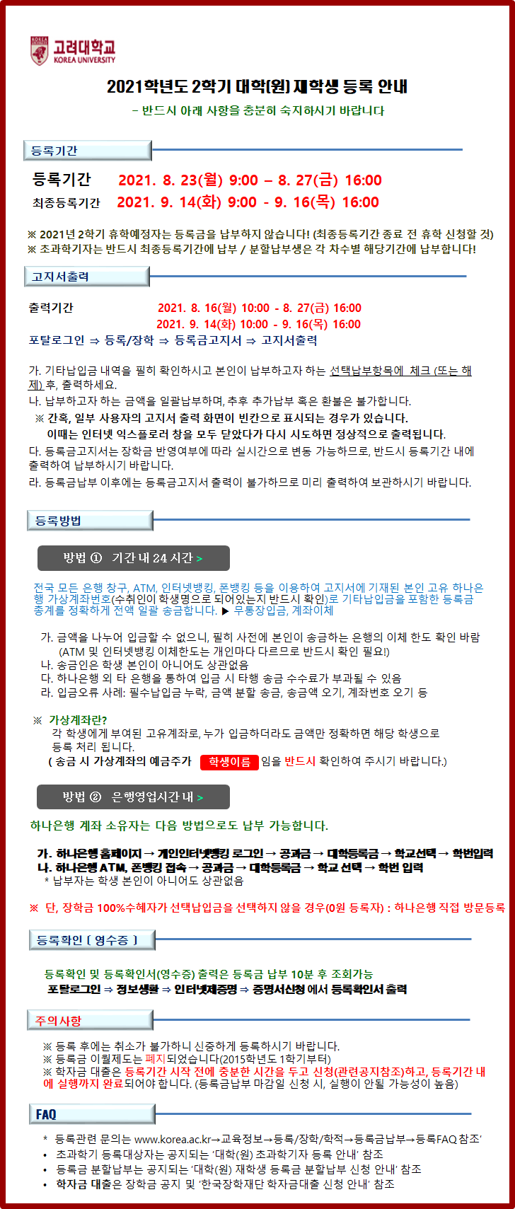 휴·복학기간: 학사일정에 따라 복학신청을 하시기 바랍니다.(2021-2학기: 8/2~8/25 17:00까지)