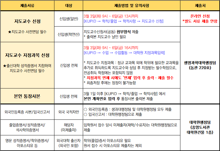 2026학년도 전기 신입생은 아래 내용과 첨부파일을 참고하시어 기한 내에 서류를 제출해주시기 바랍니다.